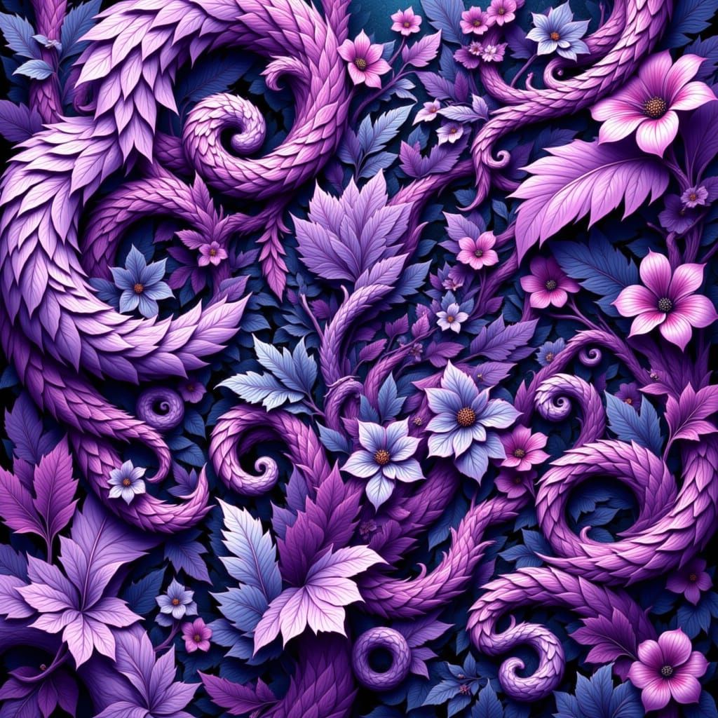 This image showcases a fantastical paisley landscape with a mesmerizing gradient of lilac to deep purple colors, evoking a sense of playful chaos and whimsy.