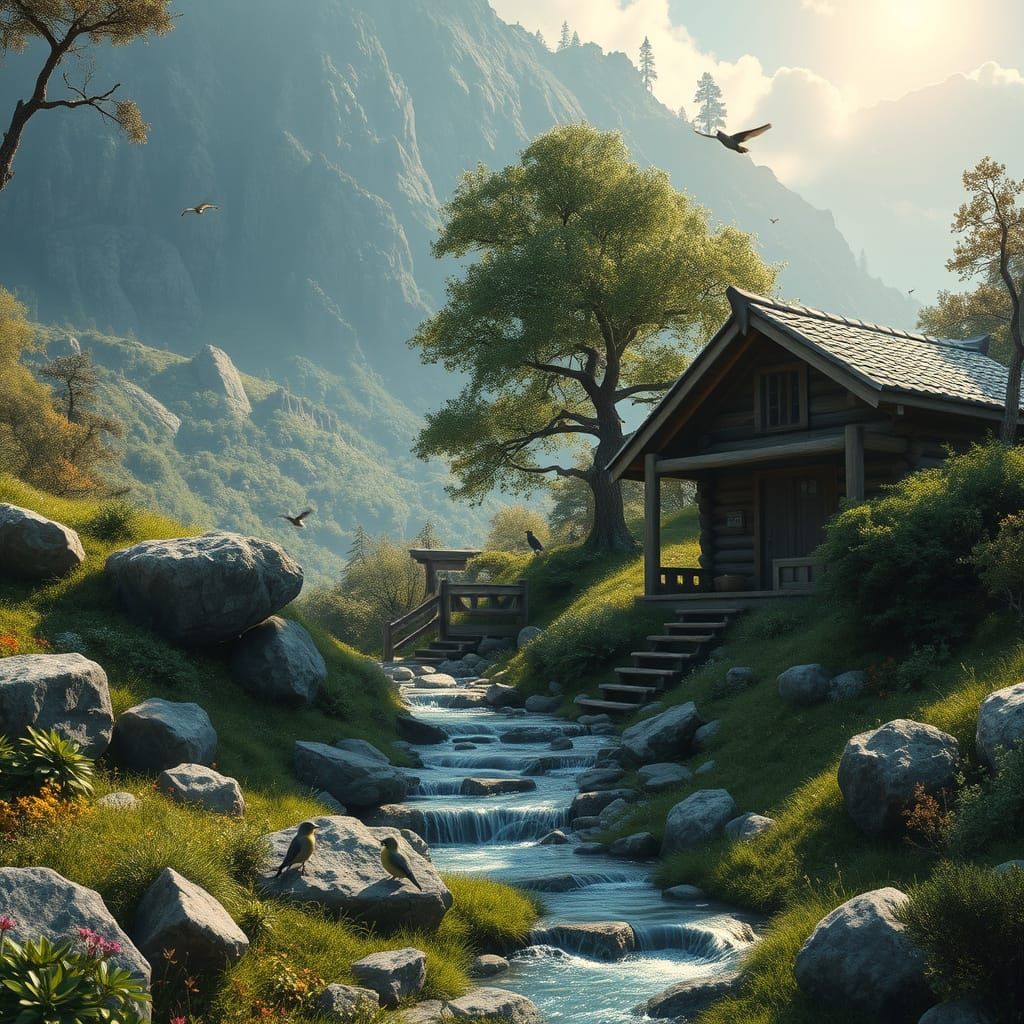 Easily generate your own mountain scenes with lush vegetation and serene waterways using our free AI image maker