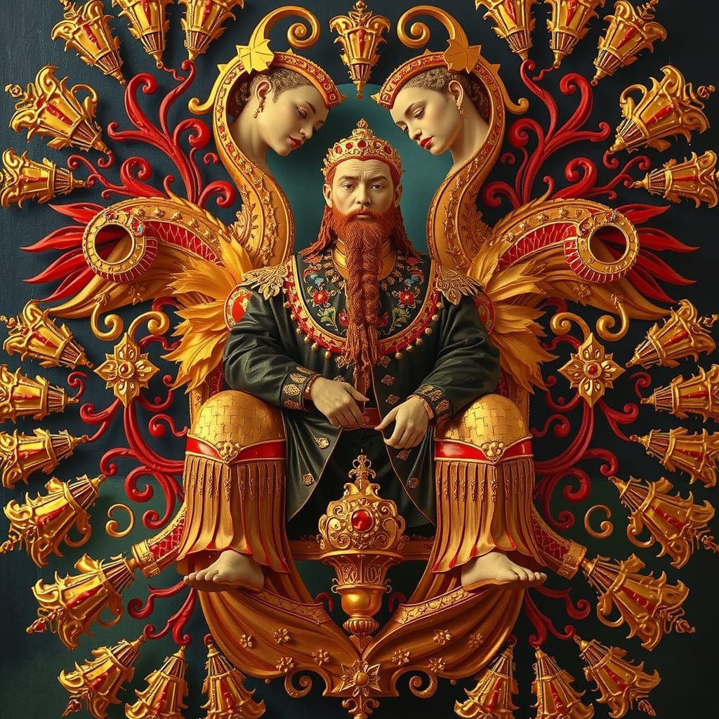 This image is an AI-generated abstract composition representing concepts of perfection, artistry, and beauty through intricate patterns and vibrant forms.