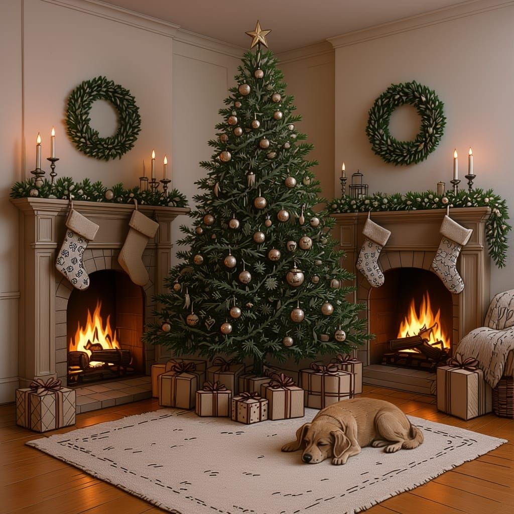 Generate cozy Christmas Eve images, complete with trees, fireplaces, presents, and dogs. Try our free AI tool now!