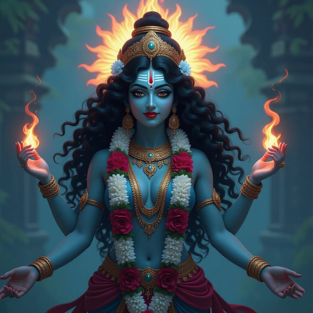 Generate powerful images of Maha Kali sending healing shakti. Try our free AI image generator today!