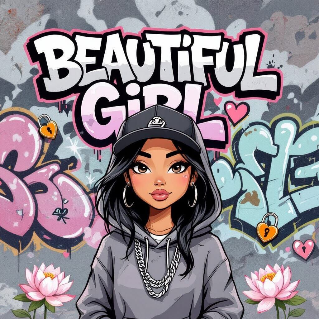 A digital graffiti illustration for a Spotify playlist cover. Features a confident cartoon girl in a hoodie and cap against an abstract urban background with pastel graffiti details.