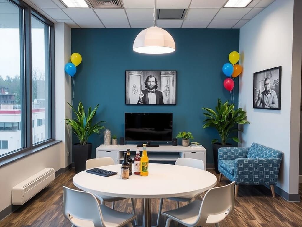 Modern breakroom decorated festively for Father's Day (decorations for the Fathers in the office)