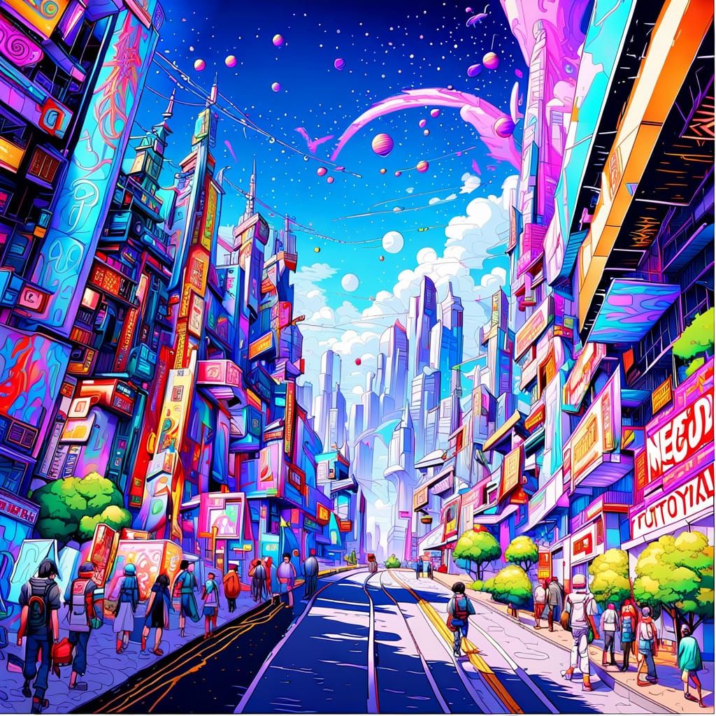 Easily generate your own futuristic city images with lush gardens and vibrant colors for free, with our AI image generator