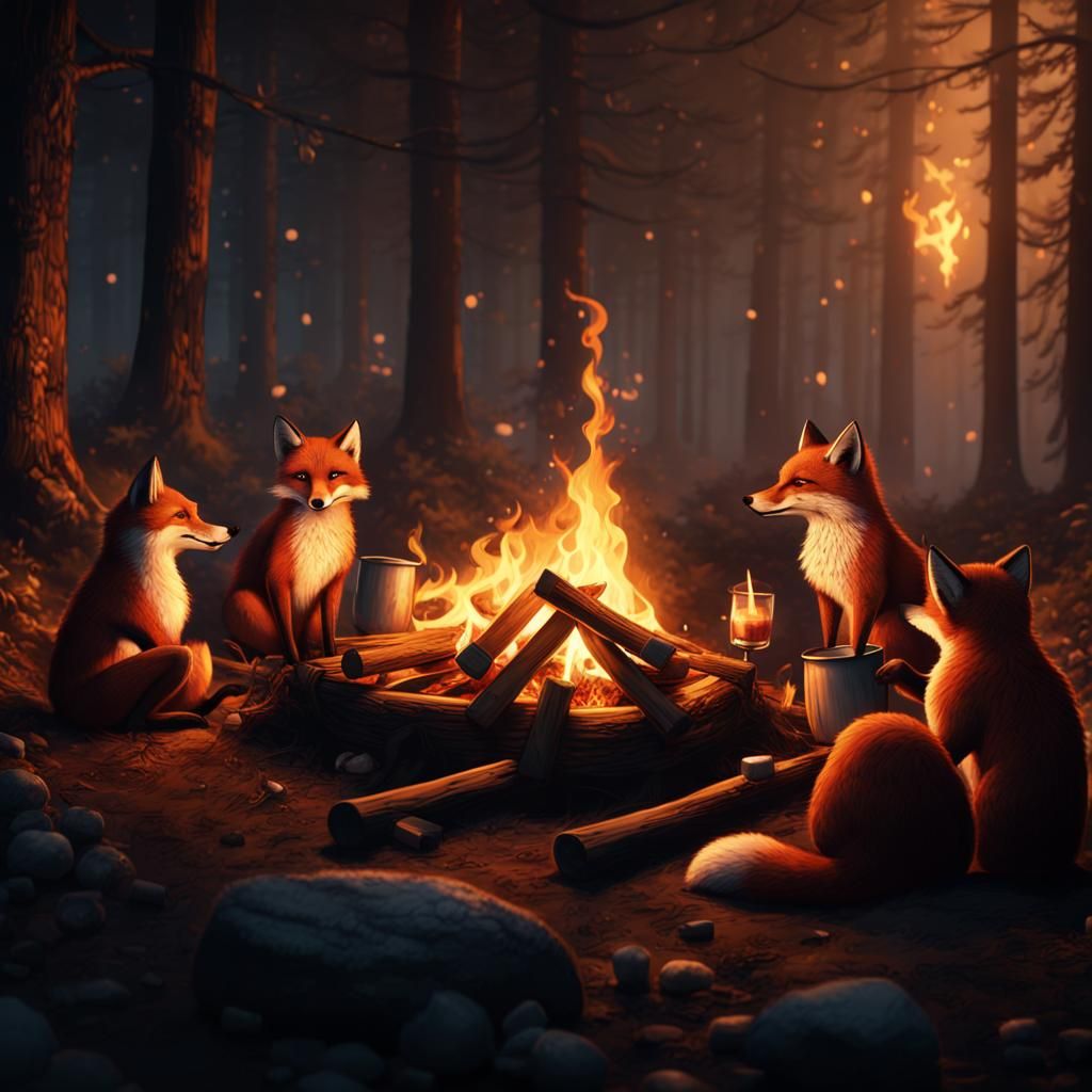 Create your own images of foxes around a campfire with our free AI image generator. It's easy!