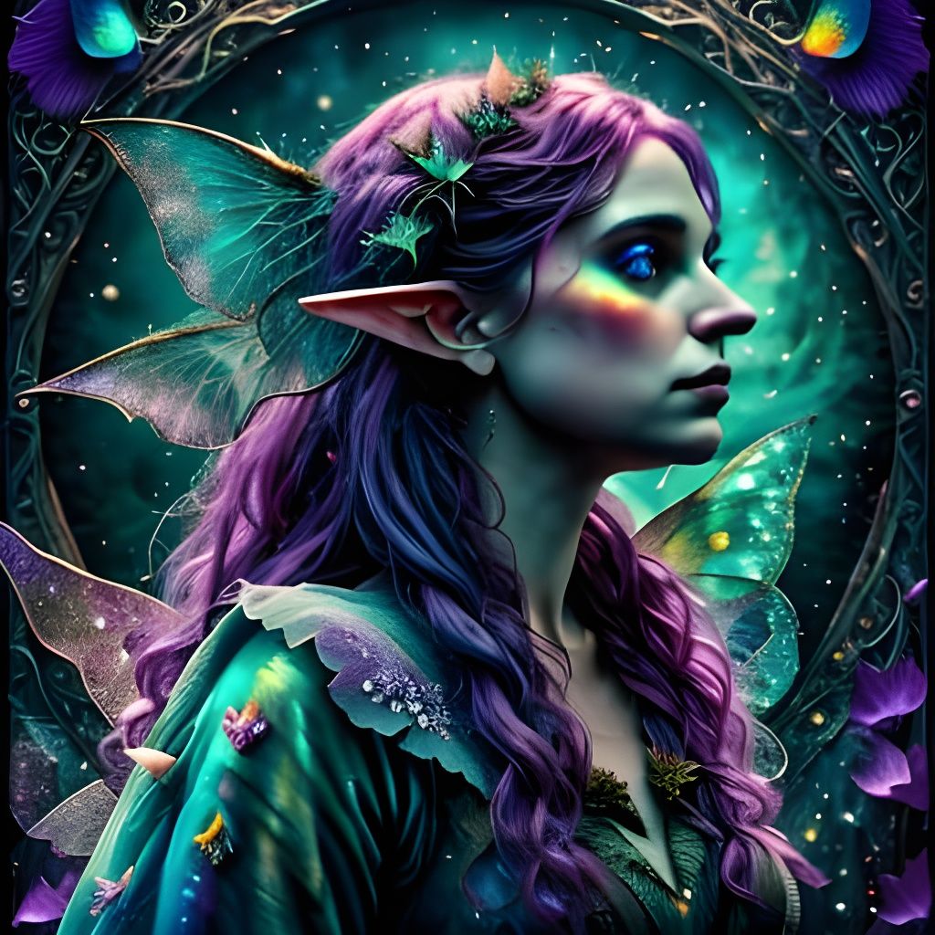 This image depicts a high-contrast fantasy scene with magical and ethereal qualities, rendered with crisp lines and an oil painting style.