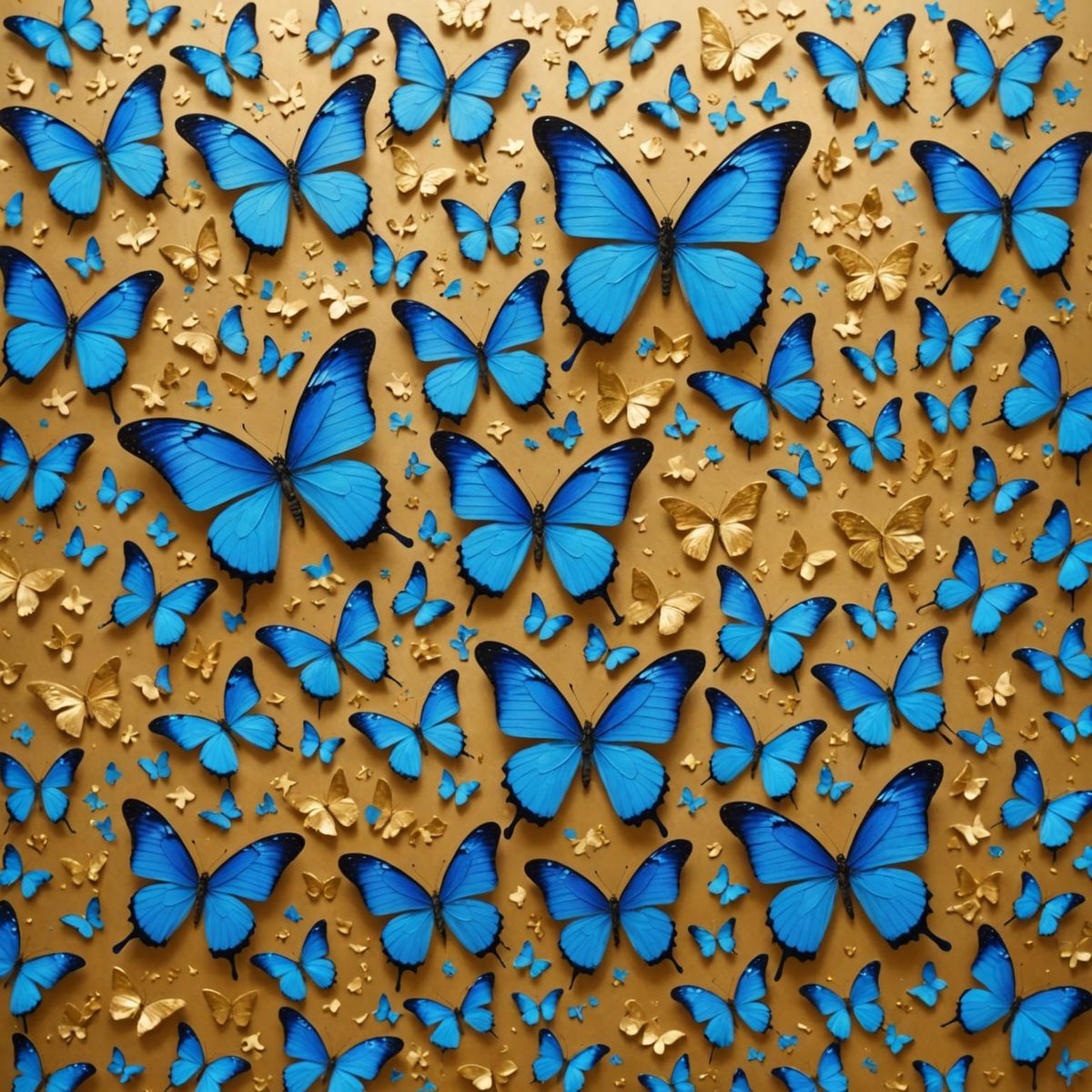 This vibrant image showcases a stunning mosaic of blue butterflies, golden infinity symbols, and rainbow handprints made from puzzle pieces, creating a kaleidoscope of colors and patterns.