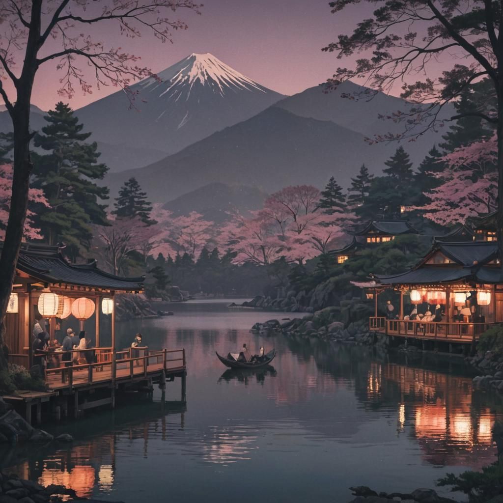 Generate your own ukiyo-e style amusement park scenes with classic rides and lanterns. Free and easy AI art.