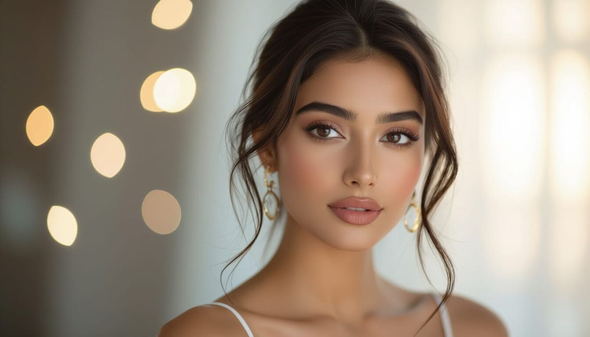 A striking picture of a confident Indian digital influencer. This photorealistic portrait showcases soft, flattering lighting and a subtle bokeh background, creating an approachable yet impactful expression.