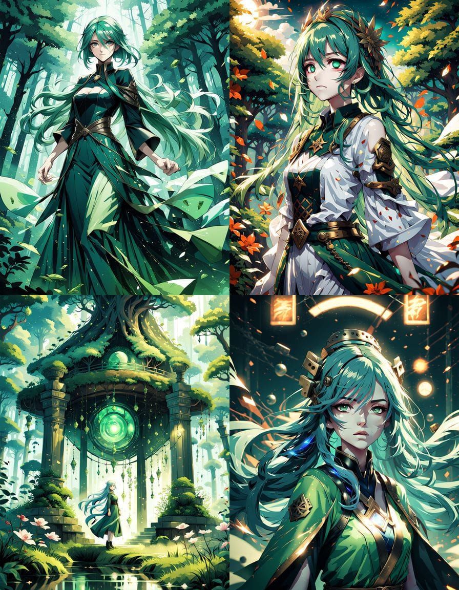 Design unique anime CD covers featuring green-haired girls in flowing dresses. Free and easy AI image generation.