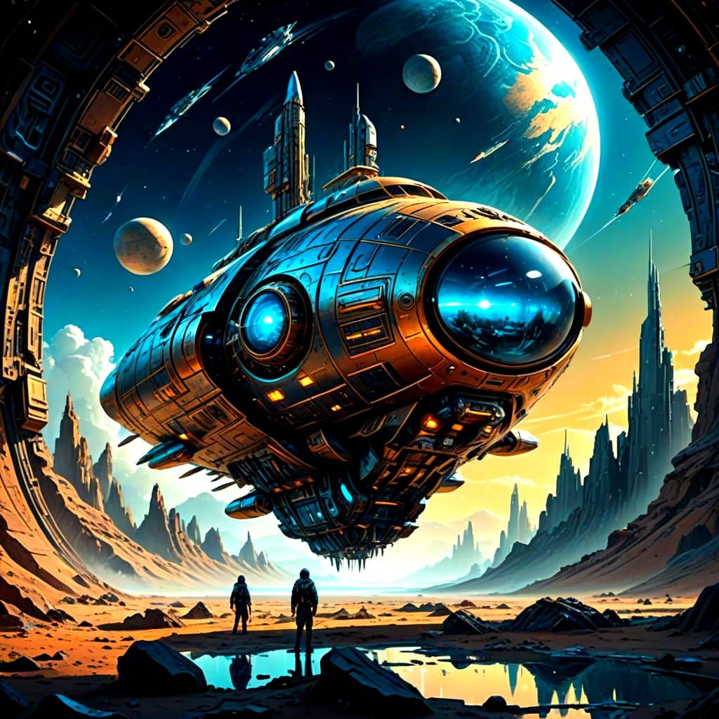 Generate your own futuristic spaceship images in the style of rich, textured Orientalist oil paintings. It's free and easy!