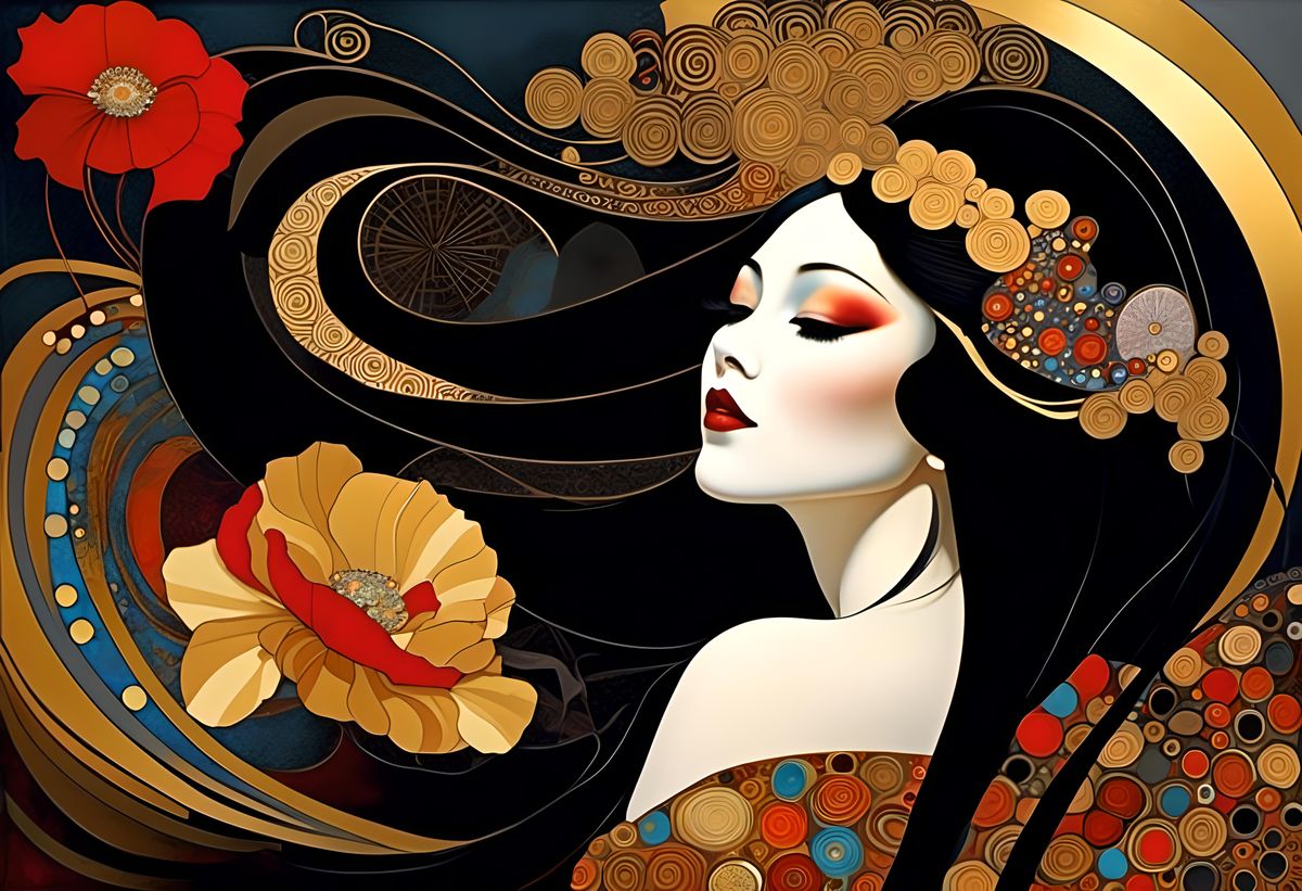 Create your own dazzling Geisha-inspired art in the style of Gustav Klimt. It's free and easy with our AI image generator!