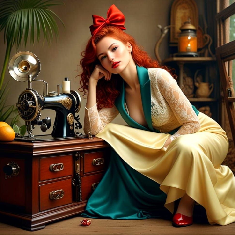photorealistic full-height image of beautiful happy 44-year-old ladies in fantastic surreal scene by Cesar Santos, Yigal Ozeri, Catherine Hyde, Andy Kehoe, Leonora Carrington, Henri Rousseau,