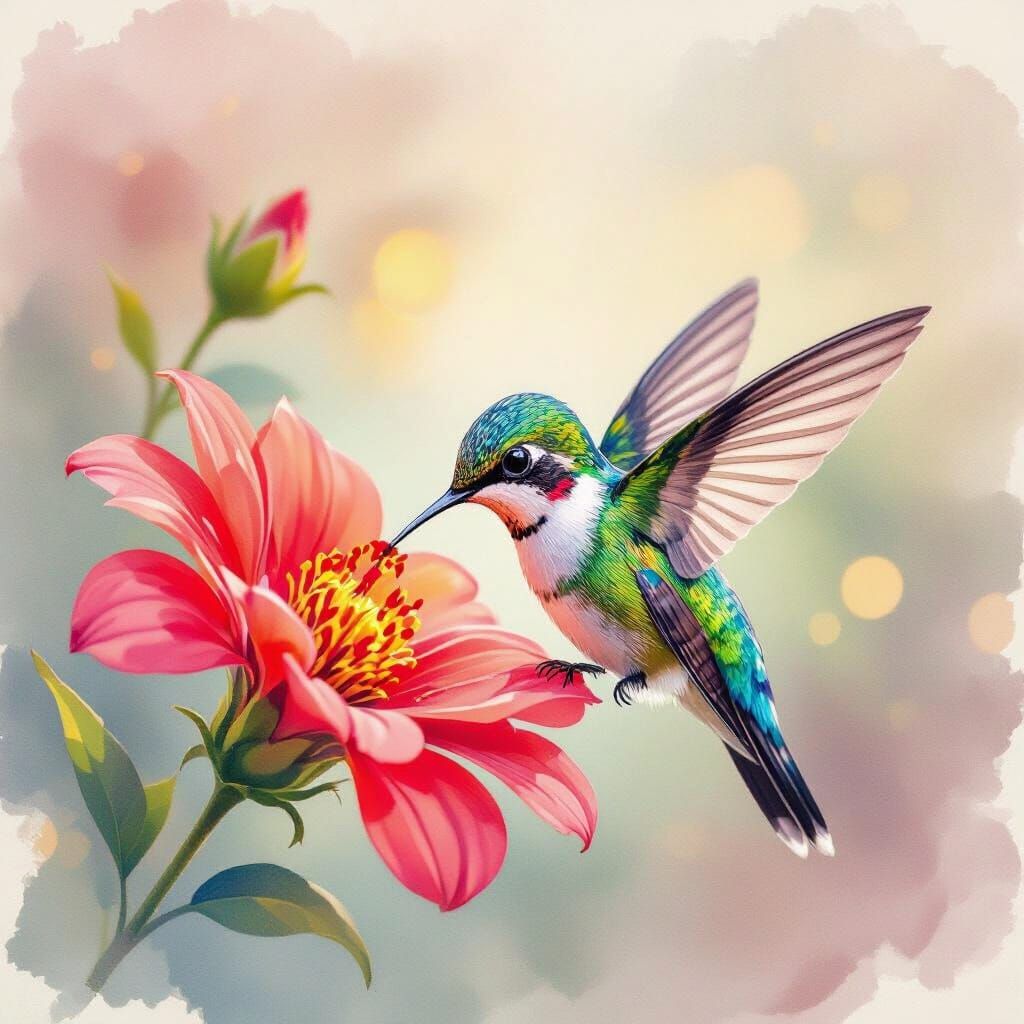 Generate your own vibrant watercolor baby hummingbird art with our easy-to-use AI tool. Free and fast!