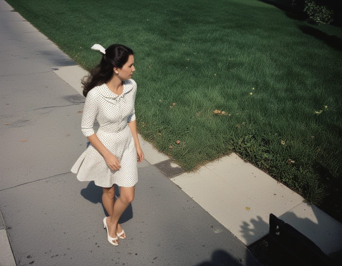 This image features a person in a polka dot dress with a halftone print texture and white grid overlay, capturing an instinctive, unflinching spirit.