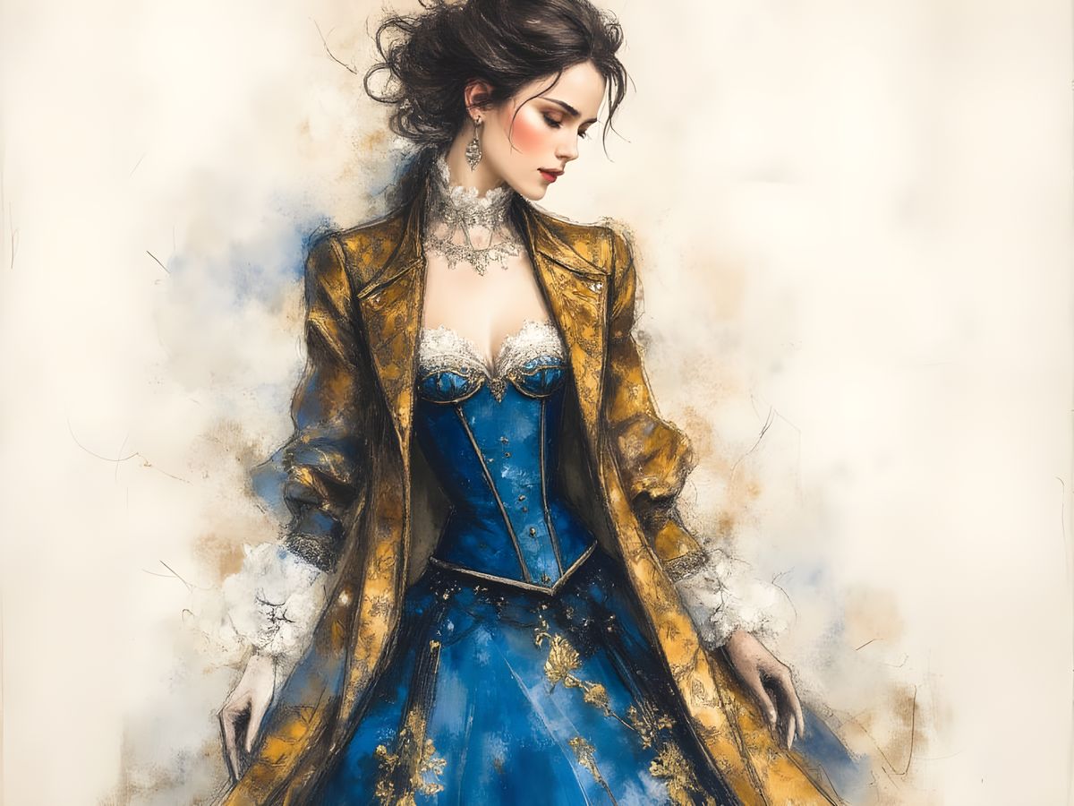 Easily design unique blue corsets with our free AI image generator. Get creative and make stunning fashion visuals.