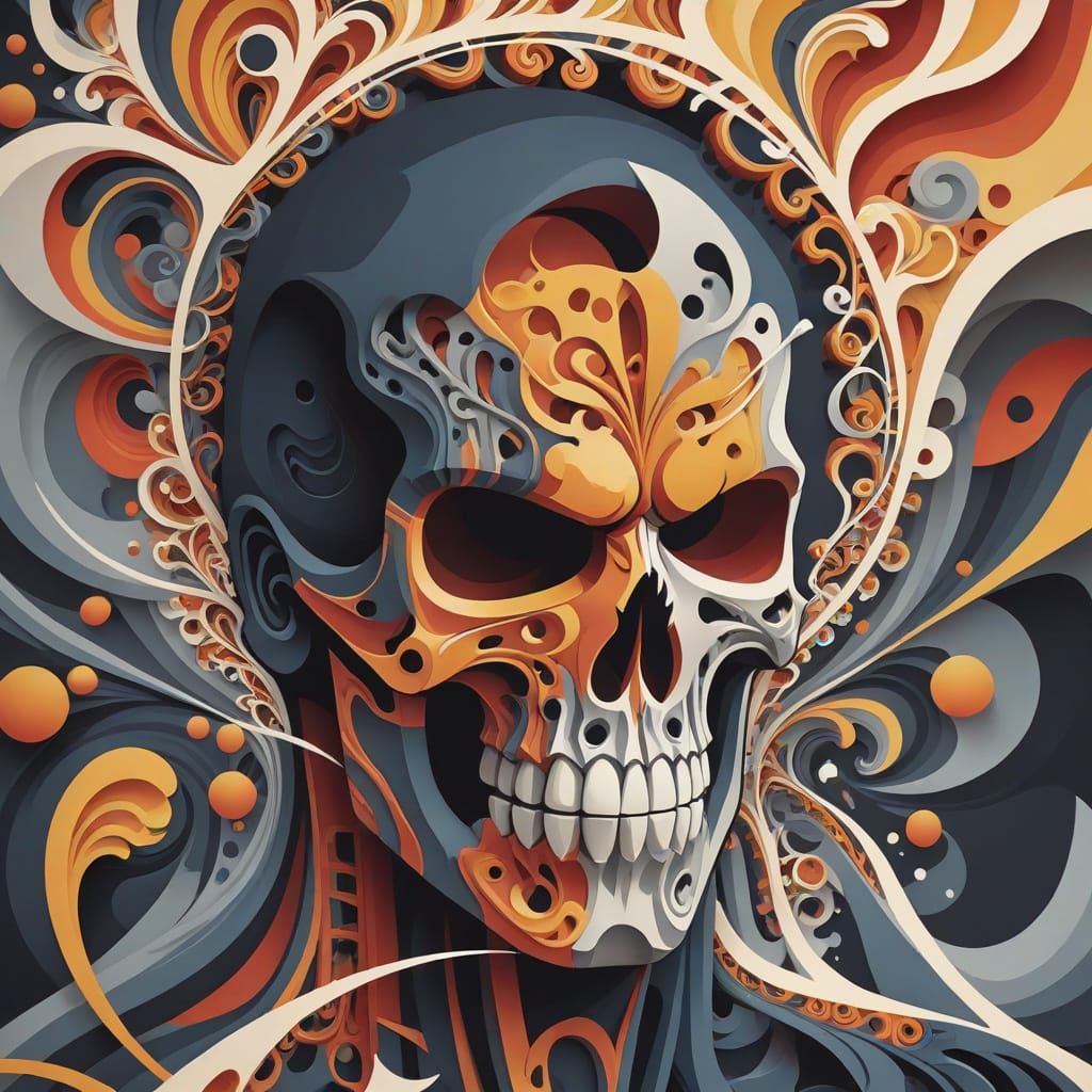 This image is a detailed gouache painting featuring abstract vector fractal patterns with wave function elements and Zentangle designs, enhanced by 3D shading.