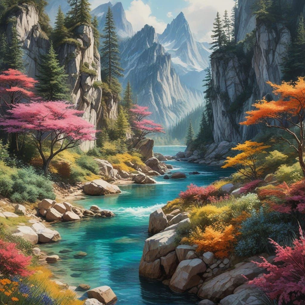 This enchanting digital watercolor painting transports viewers to a lush, surreal landscape of vibrant colors and delicate brushstrokes, where fantasy and nature converge in a captivating composition.