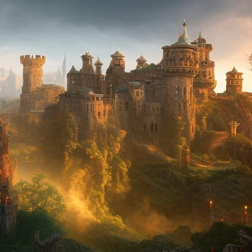 A detailed matte painting of Medusa in a decrepit medieval castle. This fantasy concept art features deep color and intricate detail, rendered in 8k resolution.