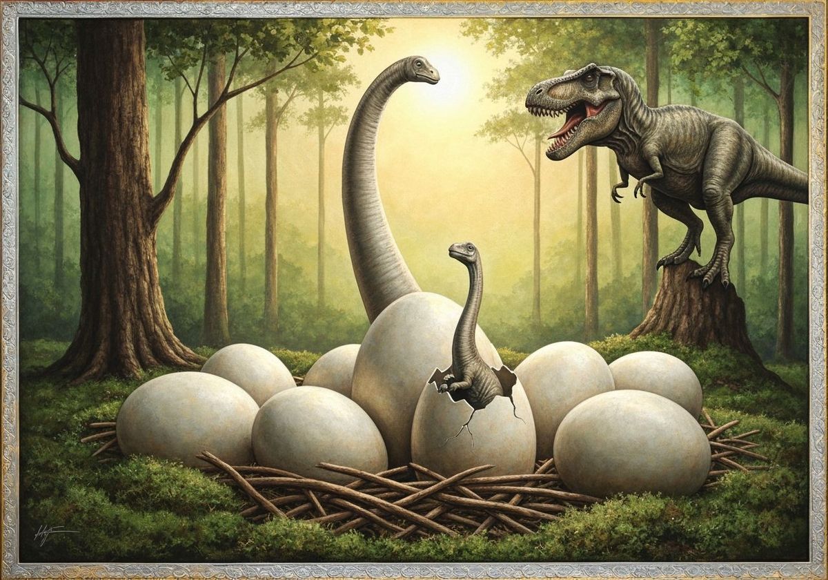 Create your own nest of precious dinosaur or dragon eggs with our free AI image generator! It's fast and easy.