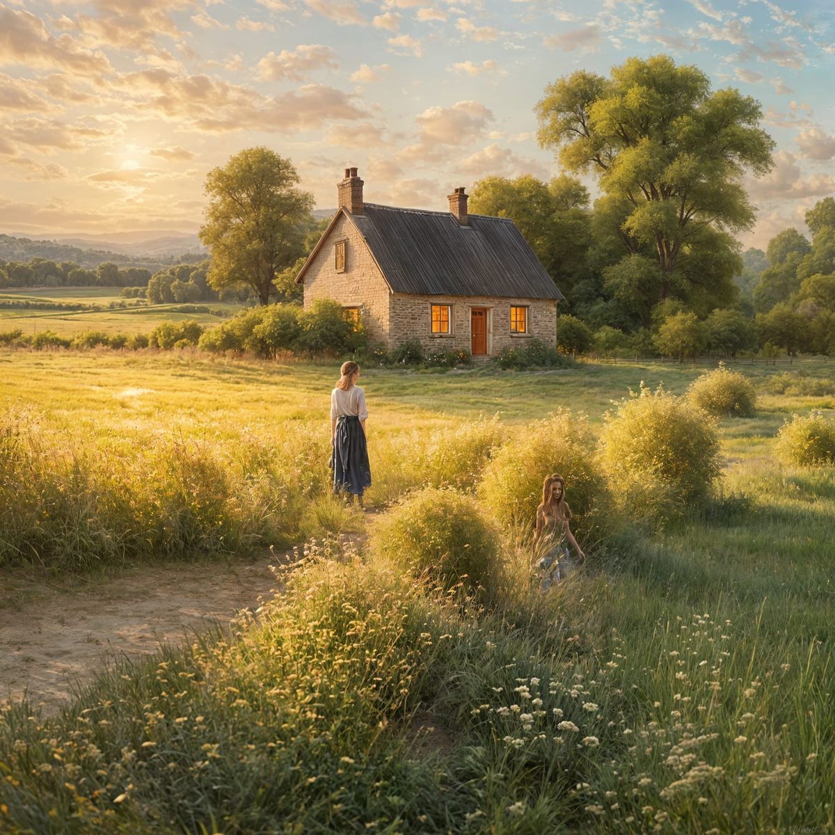 Easily generate your own serene pastoral scenes featuring women with blonde hair using our free AI image generator.