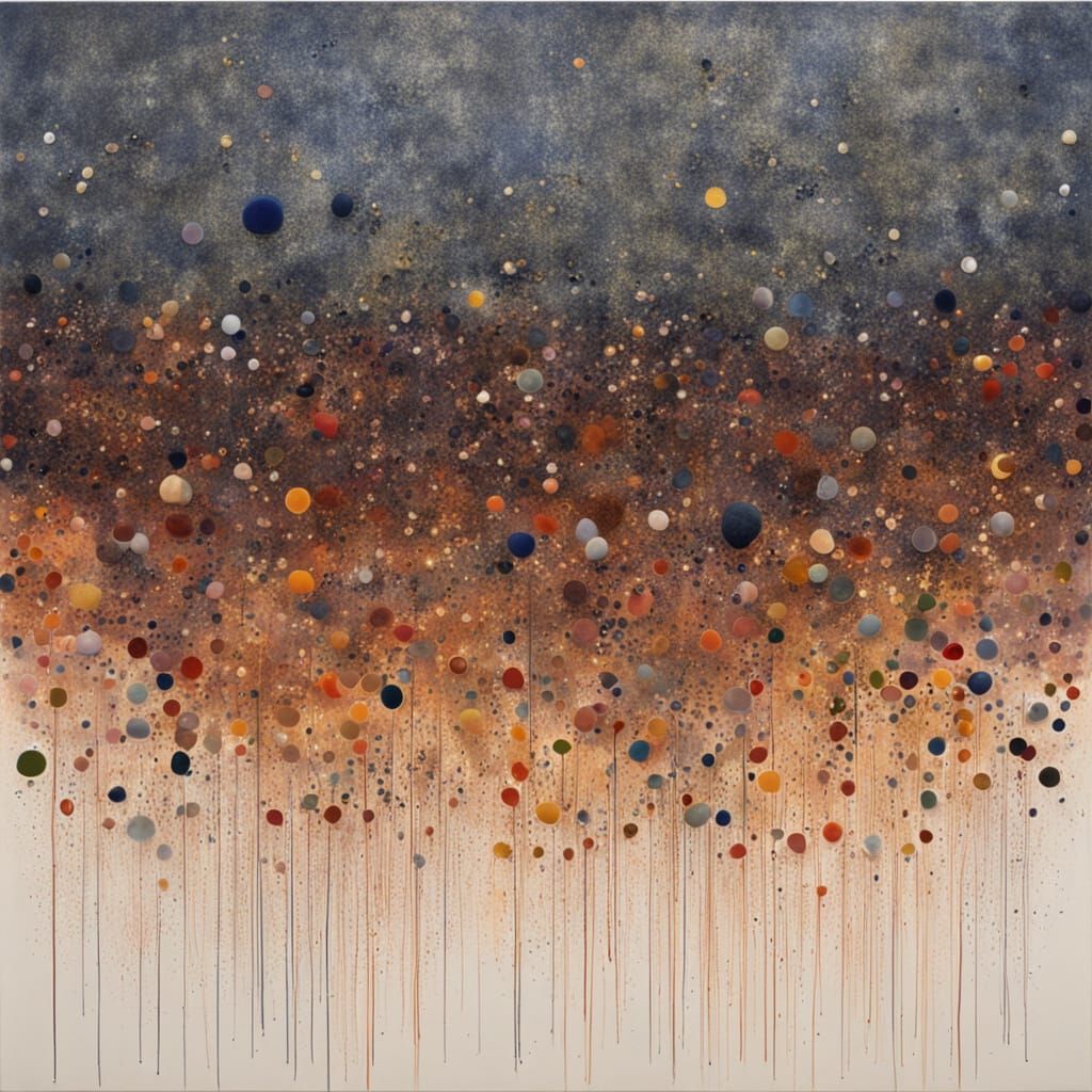 This image is a fusion of abstract expressionist styles, blending bold colors and geometric forms reminiscent of Barbara Takenaga and Mark Rothko's artistic legacies.