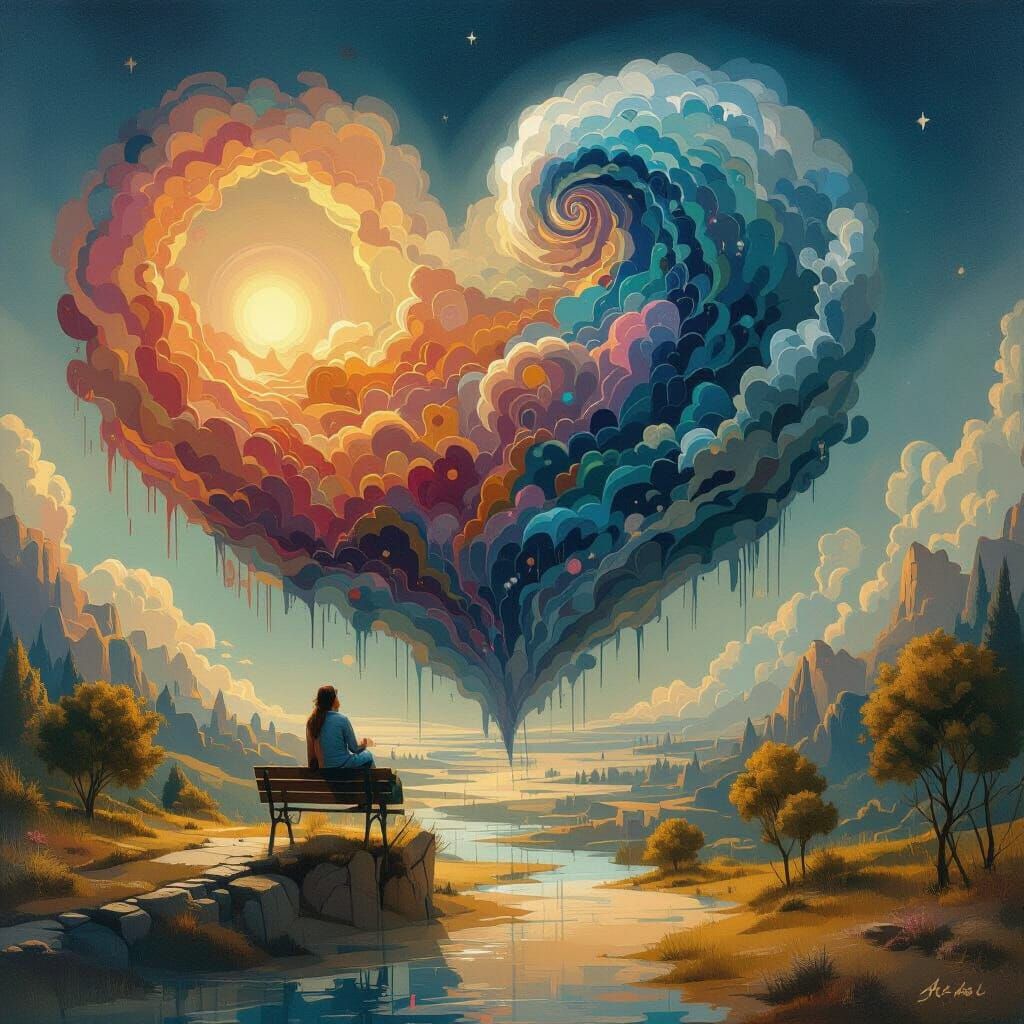 This AI-generated artwork captures a surreal and abstract scene where dreams merge with reality in a tranquil setting. An artistic representation of inner peace.