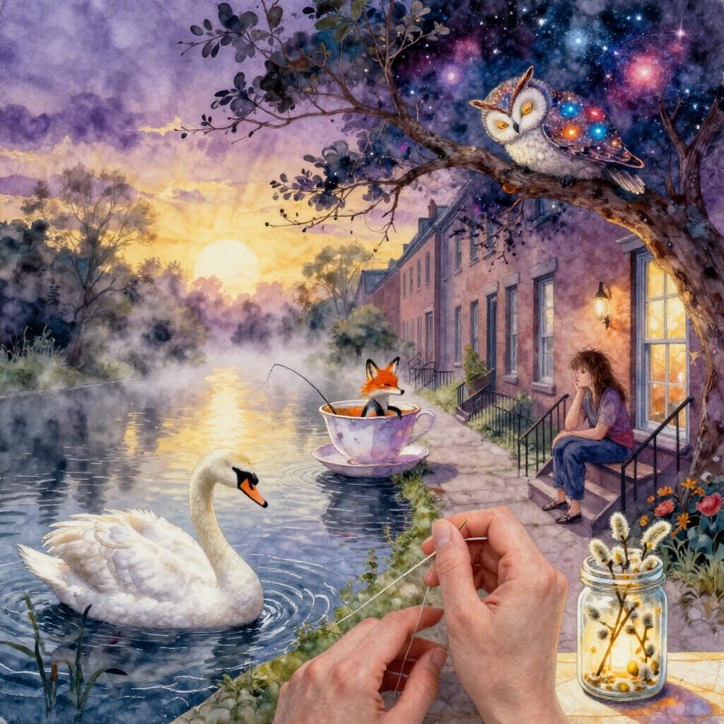 this felt a good deal like obstinacy from the generators. it's hard to tell sometimes how much that influences your thinking about the final entry. submitted to daily challenge mashup #28 (little wins for little guys, creative flow, creatures at rest, in-between moments, a fresh start), hosted by hrodebaiart, 1/9/26