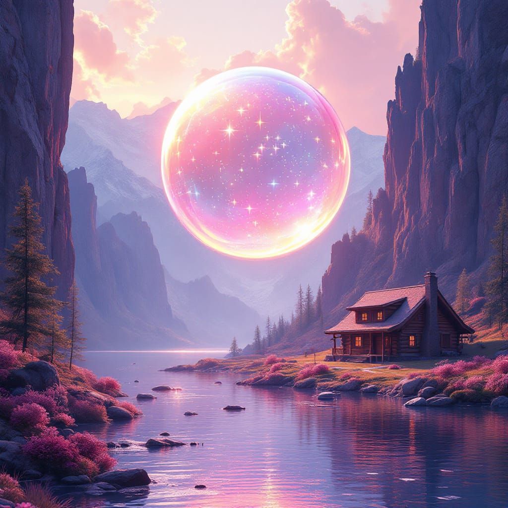 A few hours later as dawn approached the bubble arrived at a familiar shore where a log cabin waited for it's owners.