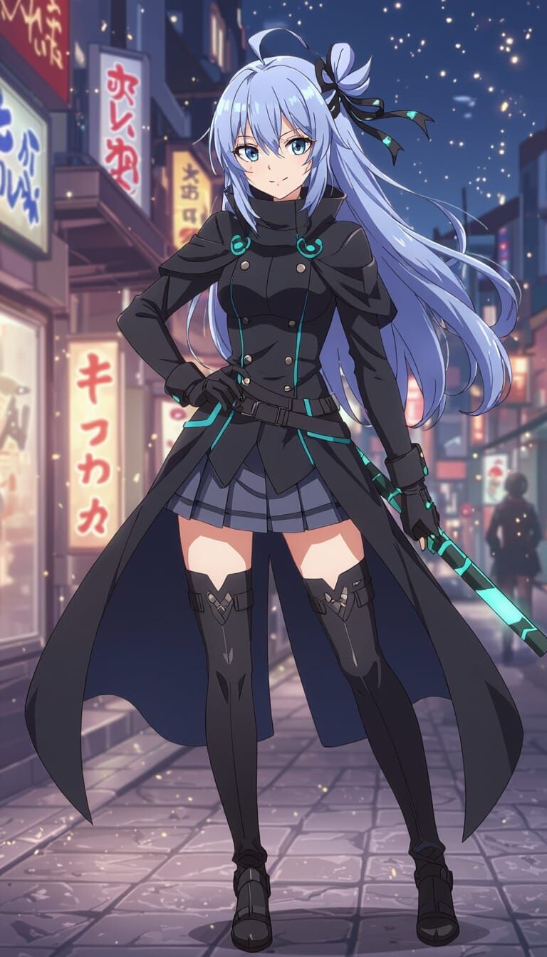 This image shows an anime-style animation with a background that complements the action. It's rendered in a cel-shaded style with special effects and textures, inspired by anime art.