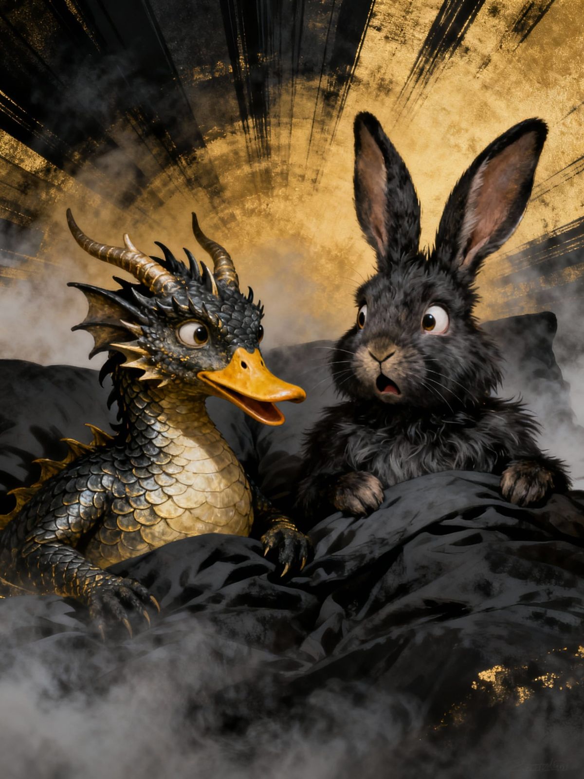 Mr and Mrs Dragonfishduck woke up in the midst of a misty black/gold/black interrupted radial gradient to find themselves hybridised with Hydnora Hares, utterly against their wills. This was, indeed, a bit of a pickle, which I'm sure we'll be hearing more about, by and by.