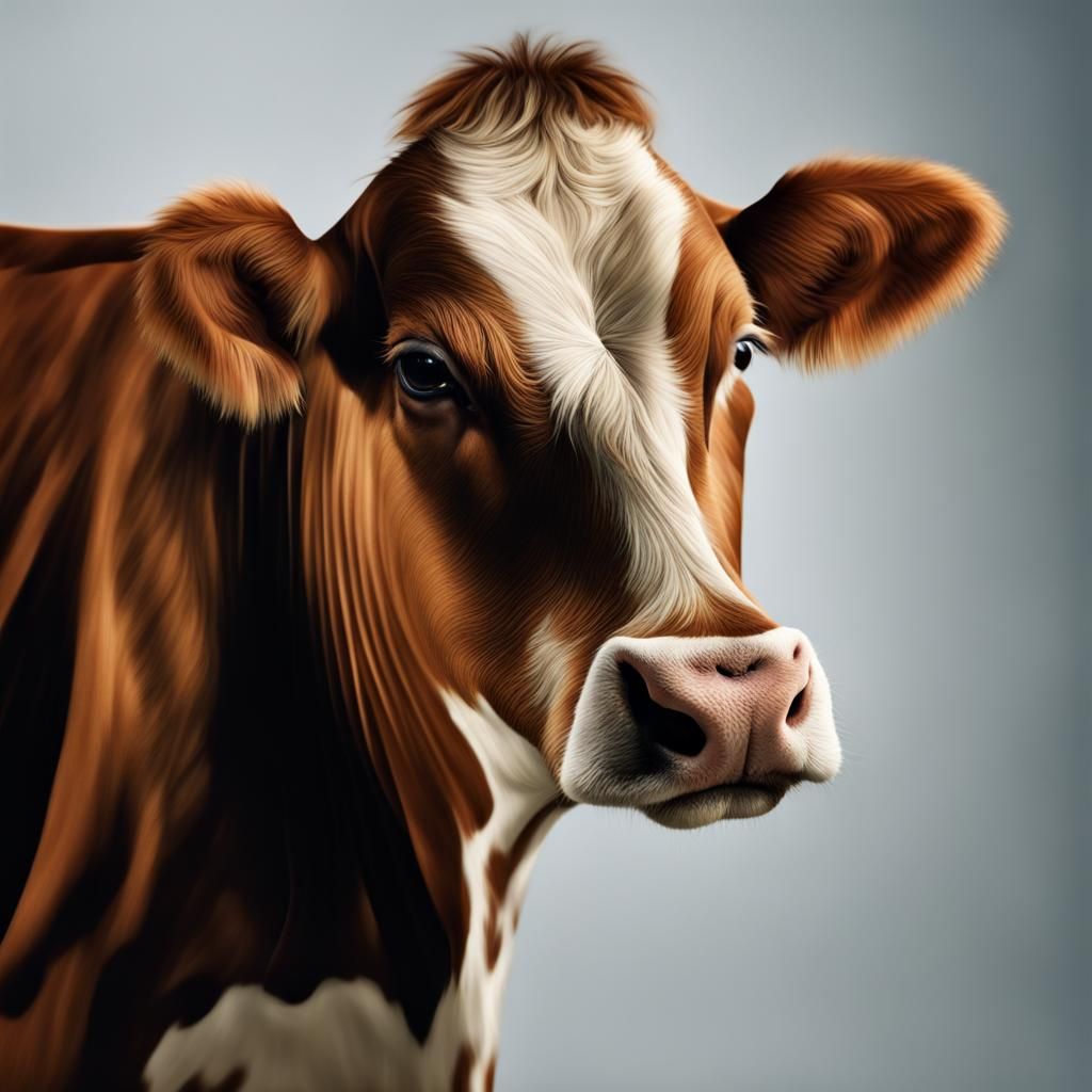 A close-up portrait of a black-lined cow. This professional photograph captures the animal with a shallow depth of field and studio lighting, reminiscent of high-resolution DSLR photography.