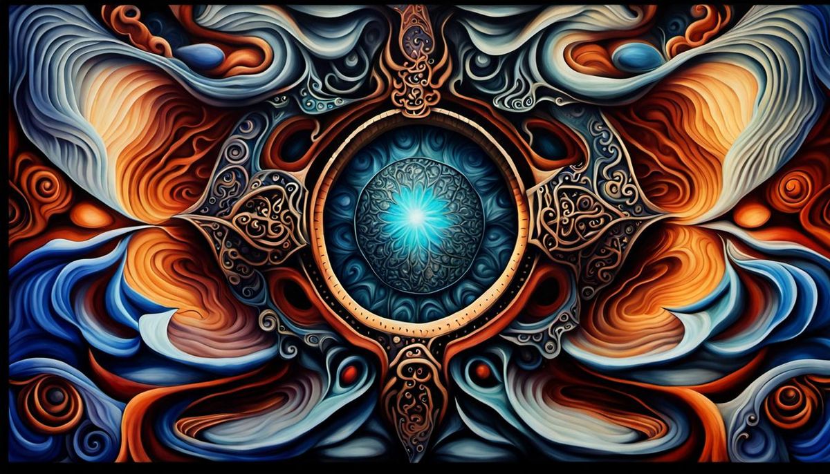 An abstract image of a fantasy vault. This piece features complementary colors and fine details.