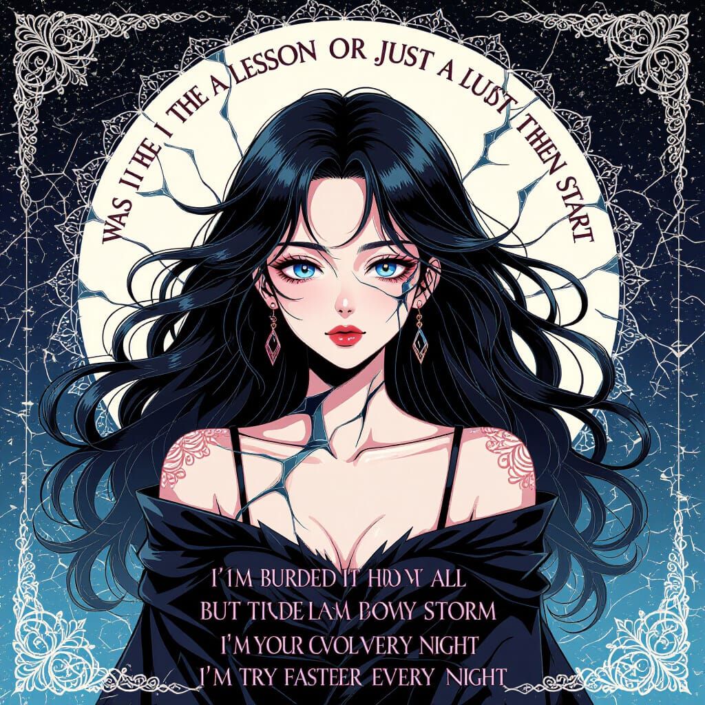 This image showcases a beautiful woman in an 80s anime style, featuring fractured and eldritch elements with intricate zentangle patterns. Dynamic lighting and a triadic color palette enhance the magical aura.