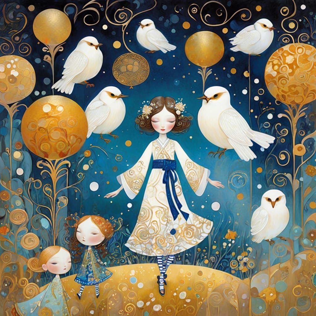 This image is an AI-generated abstract portrait inspired by the styles of Gustav Klimt and Lucy Grossmith, featuring intricate patterns and rich textures.