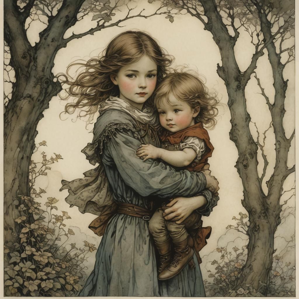 Create your own heartwarming images of siblings or magical creatures with our free AI image generator, inspired by classic illustrators!