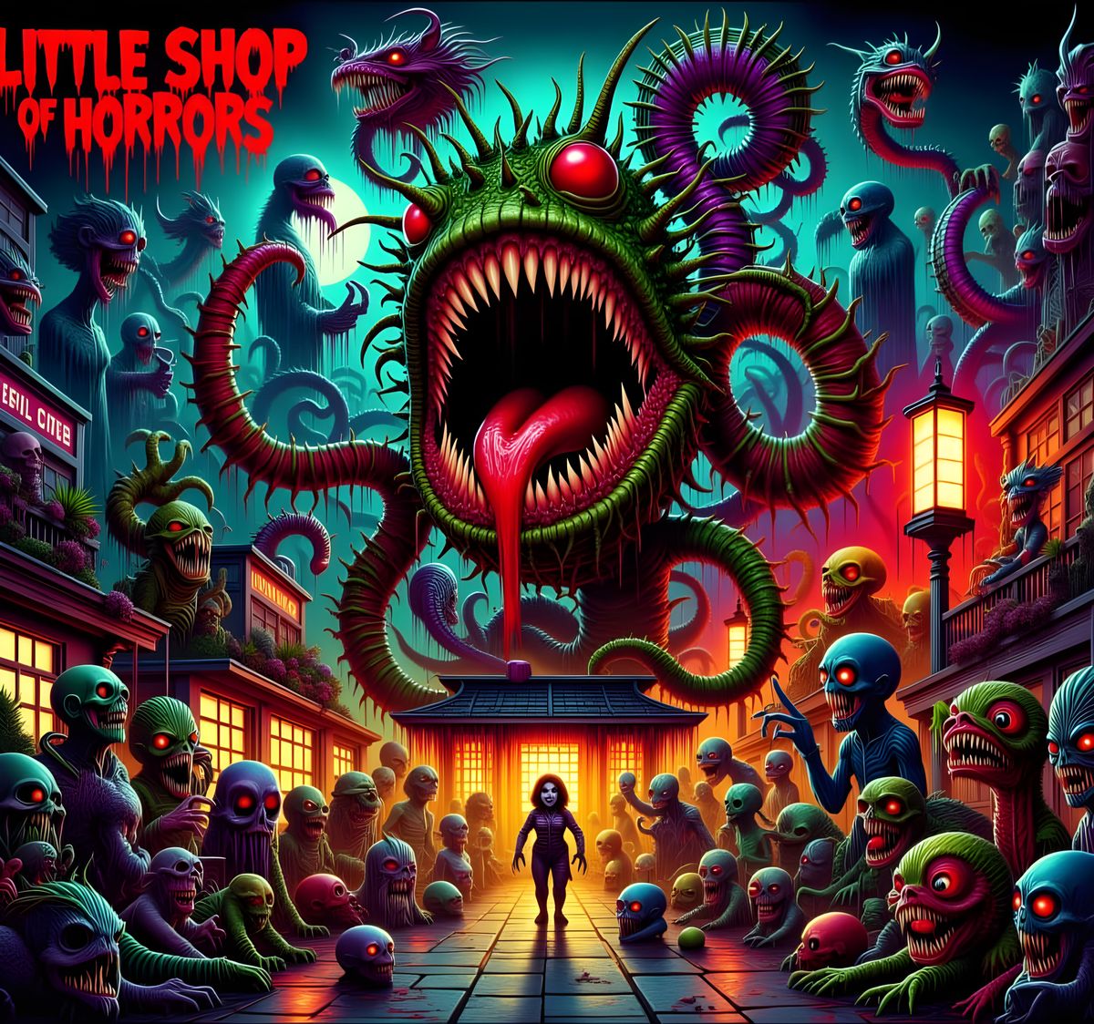 This image is a remake of the "Little Shop of Horrors" movie poster, featuring Audrey II the Piranha Plant demanding "Feed Me Seymour!".