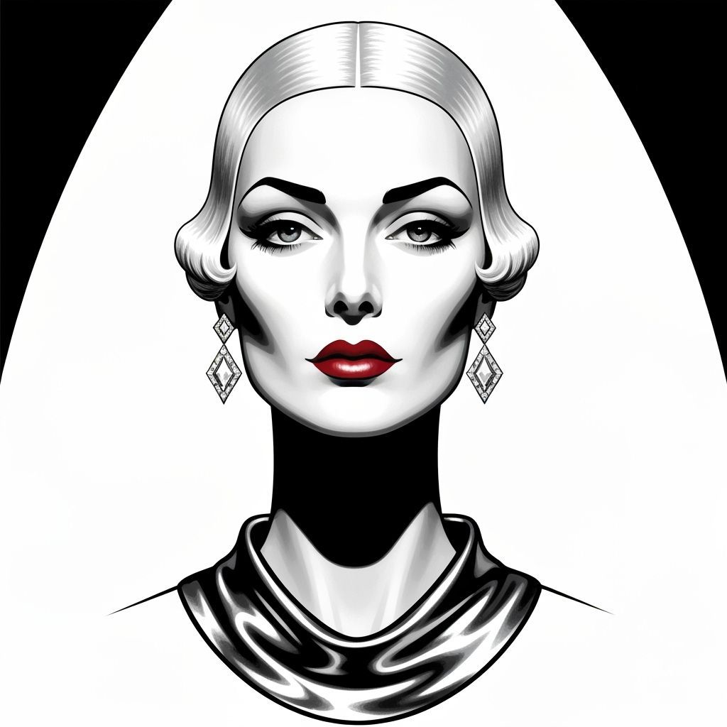 #ArtDecoPortrait #TamaraDeLempicka #1920sStyle #PlatinumBlonde #GraphicPortrait #DecoElegance #MonochromaticArt #AIArt #VintageGlamour
