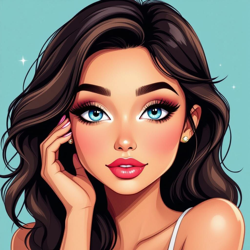 This image showcases a semi-realistic cartoon woman, emphasizing her striking beauty and particularly her expressive eyes in a captivating portrayal.