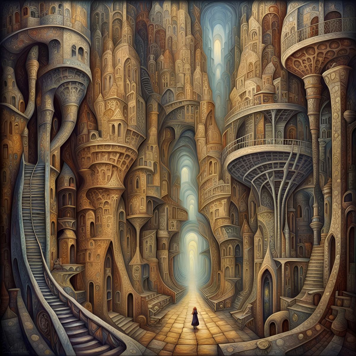 Mysterious Surreal Underground City by David Galchutt; Amanda Sage, Perfect Perspective Oil Painting