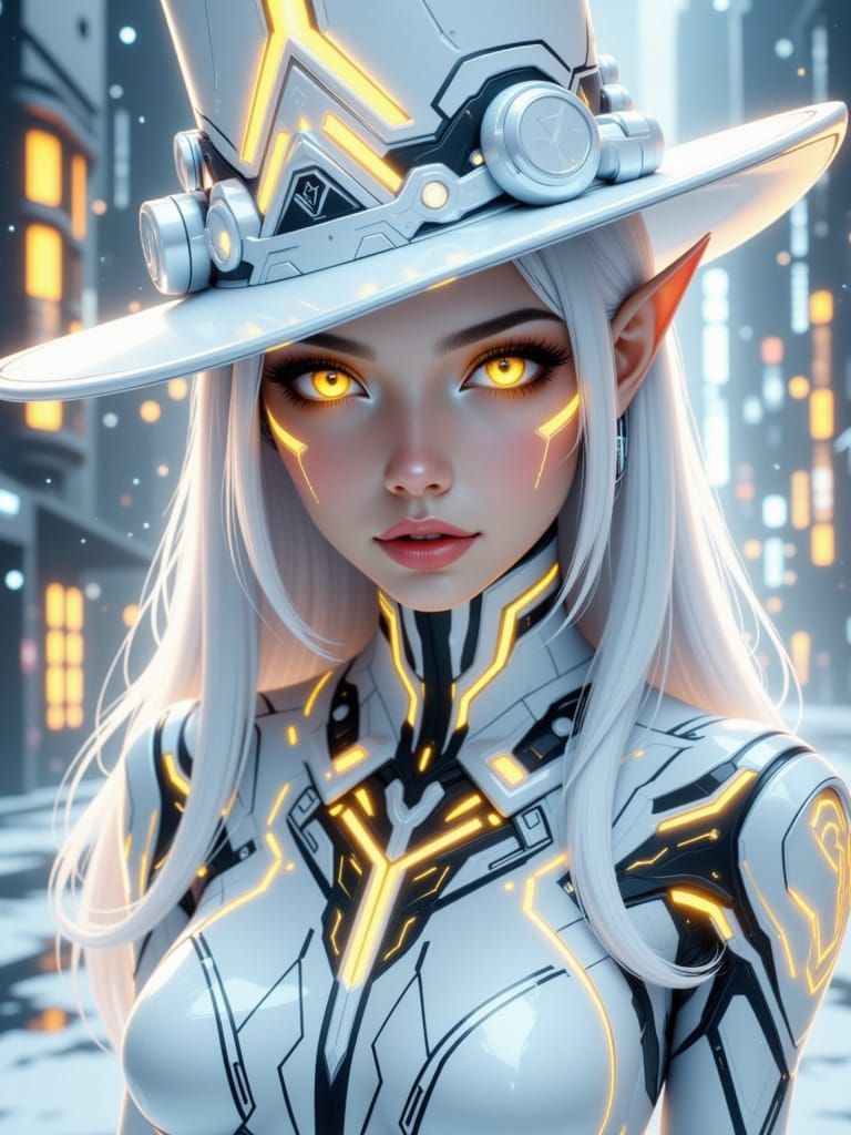 Generate unique TRON themed female elves with top hats. Free and easy AI image creation.
