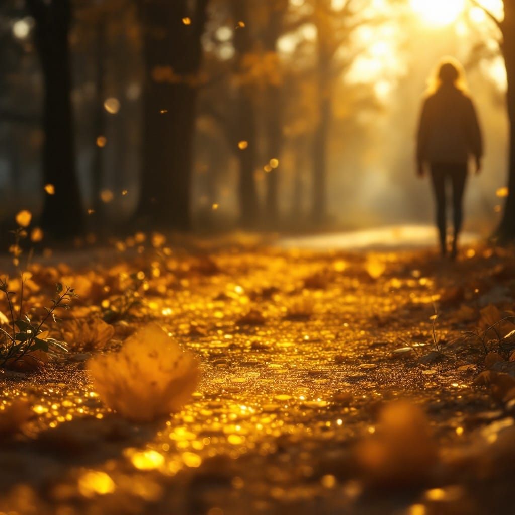 A translucent amber honeycomb overlay shimmers across the image. Hexagonal cells filled with golden liquid refract light, adding a warm glow and geometric texture while preserving subject visibility.