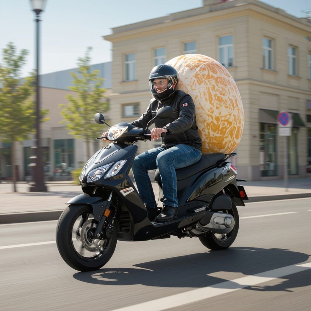 This video shows a realistic, cinematic 4K scene of Bigfoot speeding towards the camera on a scooter. The style is natural, human, and professional, avoiding animation or artificial appearances.