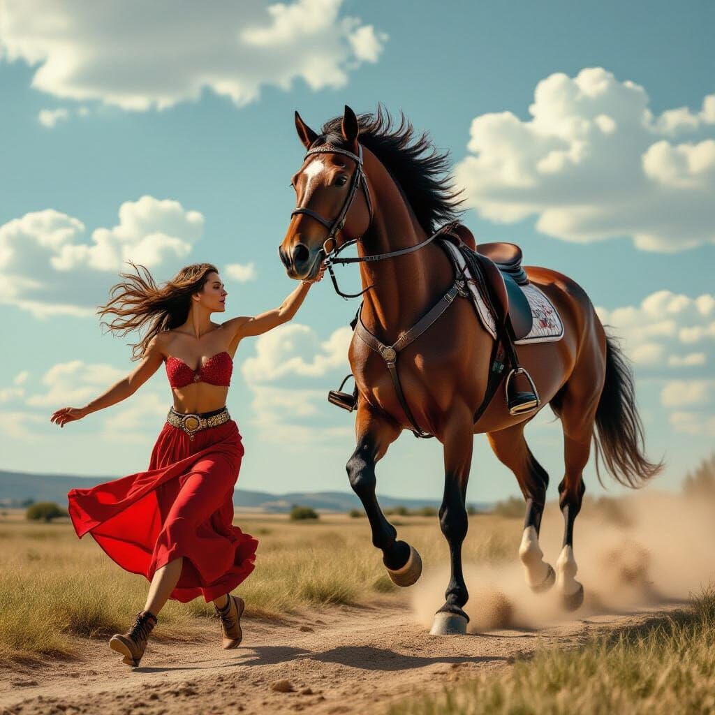 Create your own stunning images of powerful women and magnificent horses with our free AI image generator.