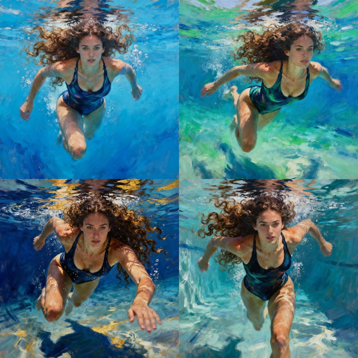 Create your own fast swimming women images with flowing hair, free and easy using our AI generator.
