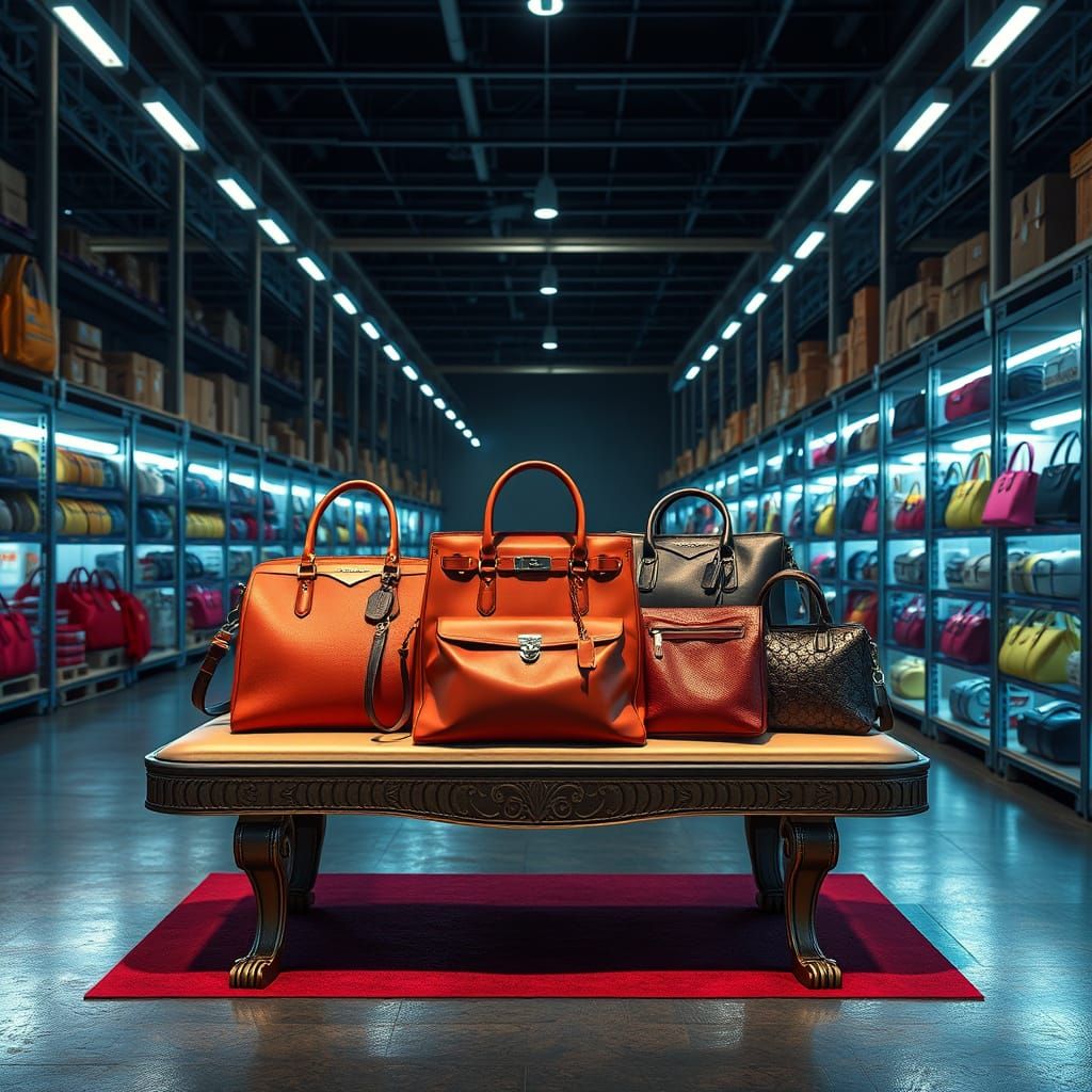Create your own luxury handbag warehouse scenes. It's free and easy with our AI image generator!