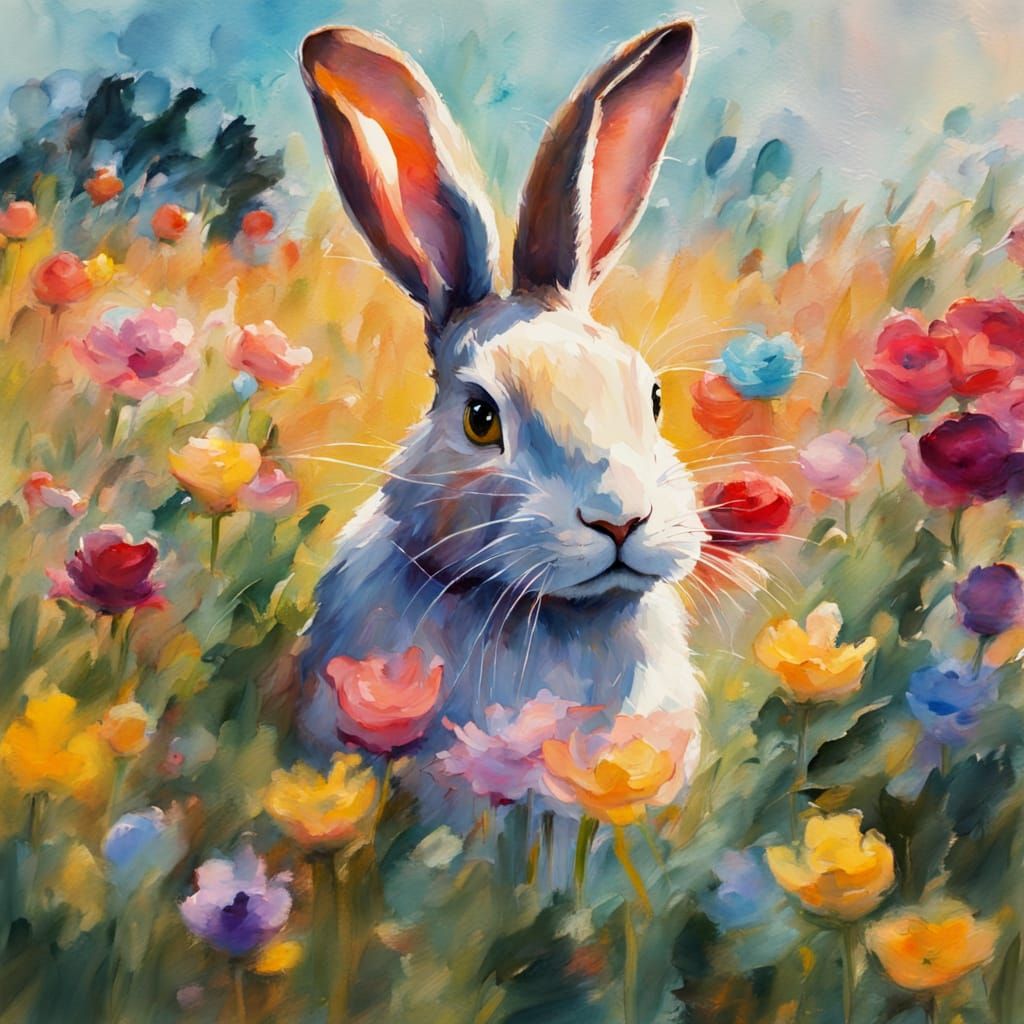 Easily generate Impressionist-style Easter bunny images with our free AI image generator, featuring thick brush strokes and vibrant colors.