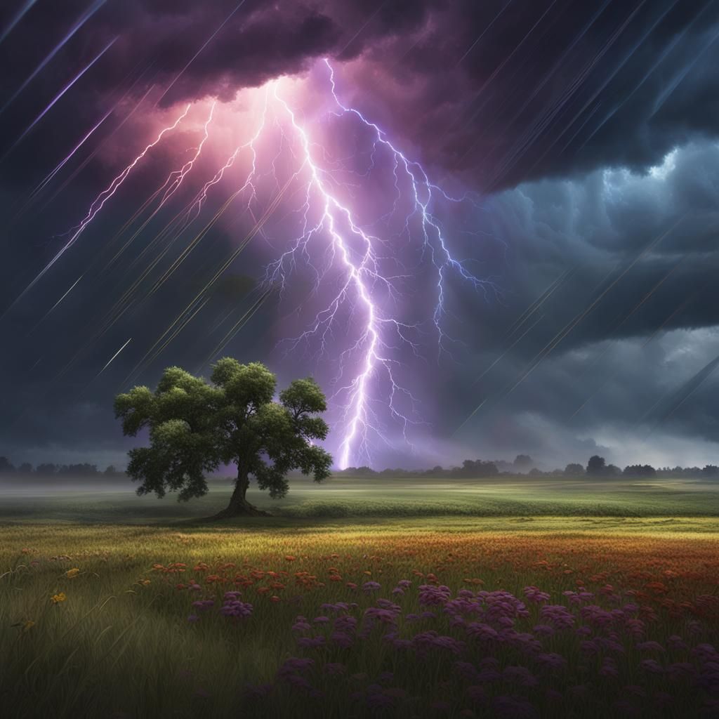 Create your own stunning images of rainbow lightning and rain with our free AI image generator.