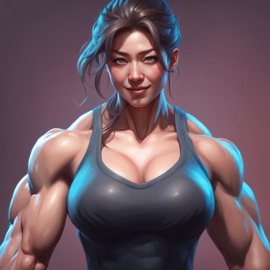 A hyperdetailed portrait of a smiling Korean man flexing. This artwork features dynamic lighting and triadic colors, rendered in a hyperrealistic style.