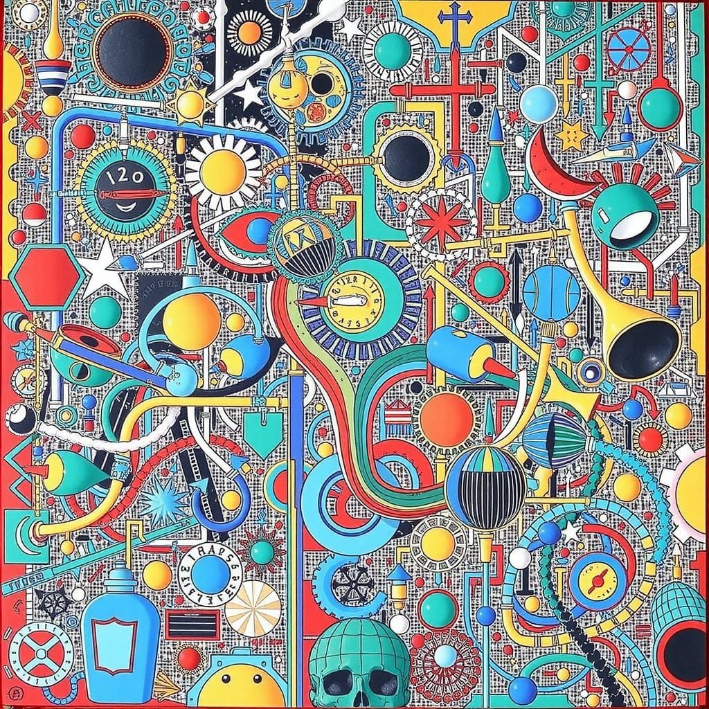 This image showcases a hyperrealistic geometric composition featuring a kaleidoscope of colors, including vermilion, yellow, green, blue, and violet, set against a backdrop of high-resolution sharpness and meticulous detail.